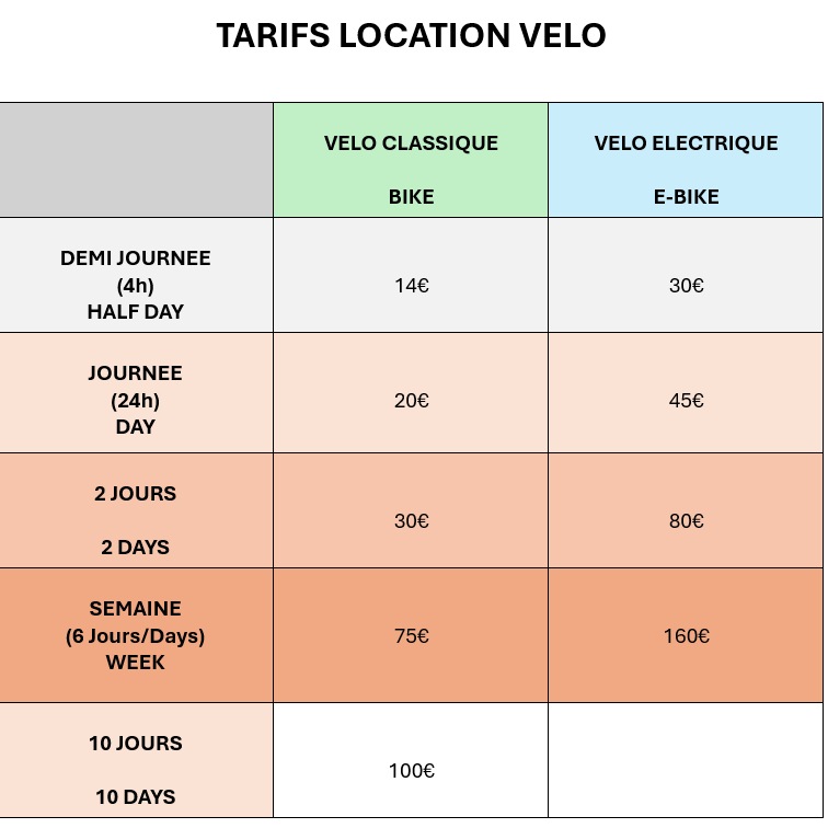 En cas de vol, perte ou disparition, le locataire devra régler le vélo au cours actuel (valeur marchande)